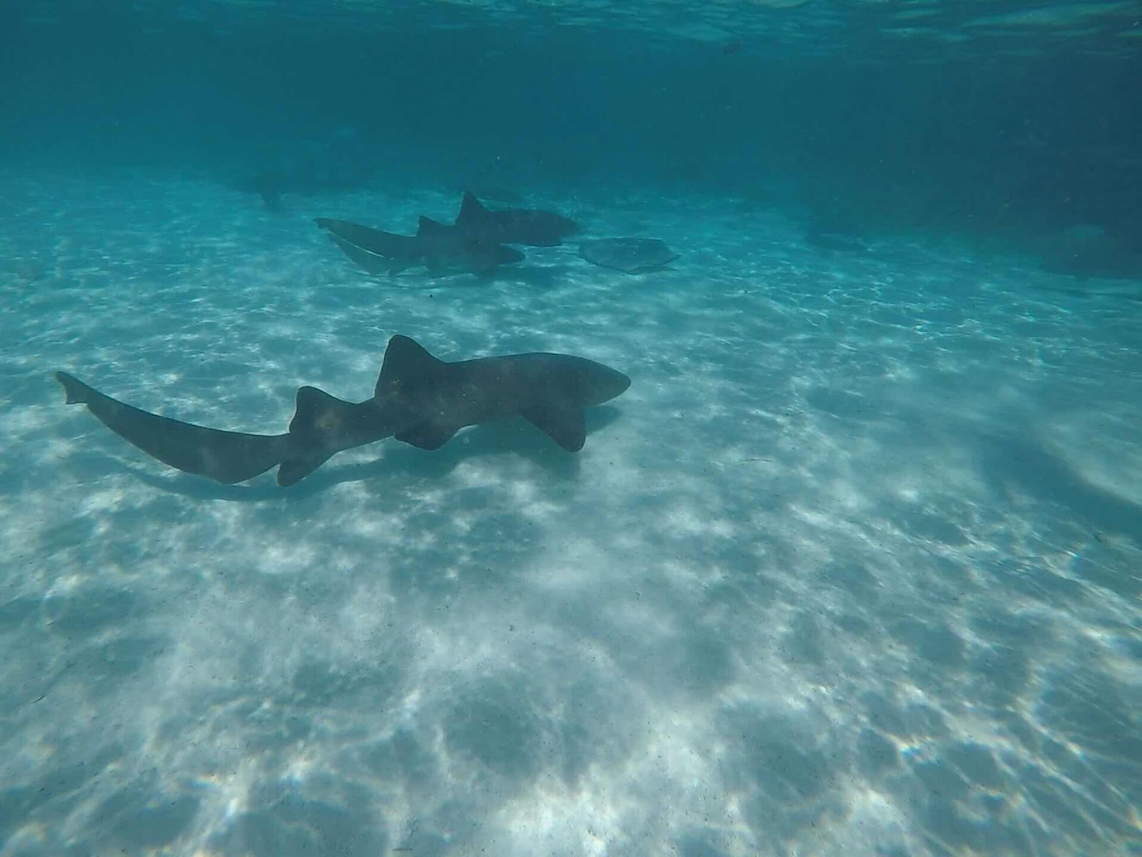 Durch das Hostel bzw. unser volles Zimmer lernten wir viele neue Leute kennen und die begleiteten uns auf eine Schnorcheltour. Neben schönen Korallen und großen, kleinen und bunten Fischen war es das absolute Highlight mit Haien und Stachelrochen zu schwimmen. Dadurch, dass ein Mädchen davor von einem Hai in die Finger gebissen wurde, als sie diesen undurchdachterweise beim füttern streichelte, wurde das Adrenalin in uns nochmal stärker entfacht. War ein echt aufregendes und surreales Erlebnis! Zeitweise waren wir von mindestens 30 Haien umringt.