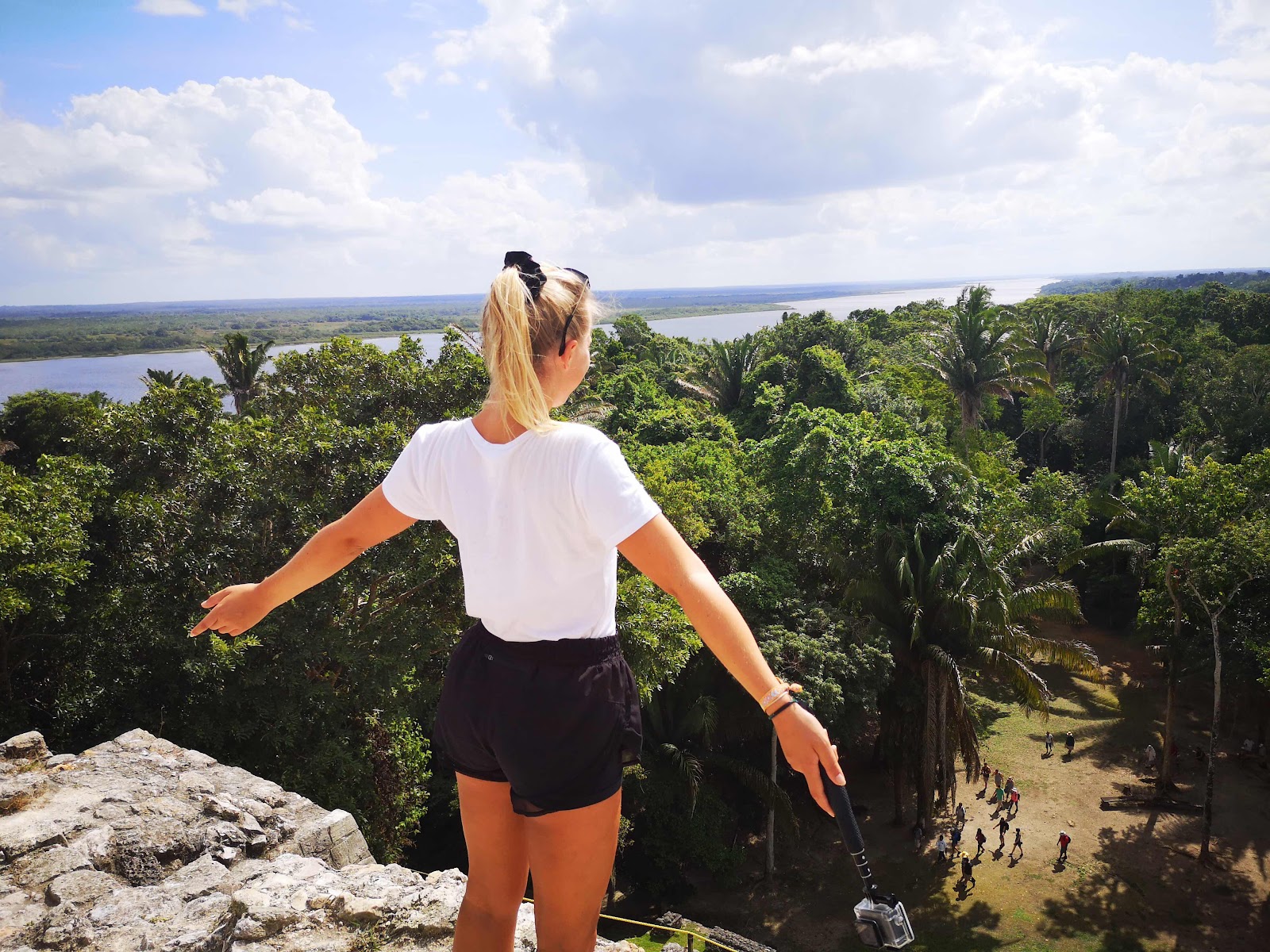 Für einen Tag buchten wir uns eine Lamanai-Tour. Mit dem Motorboot und zehn weiteren Personen fuhren wir gut 2 Stunden den Fluss entlang und uns wurden sehr viele verschiedene Tier- bzw. vor allem Vogelarten gezeigt. Ich kann mit Vögeln nur begrenzt viel anfangen, aber mich haben das Krokodil, die orangenen riesigen Leguane und der „Jesus-Christ-Lizzard“, der seinem Namen durch den Überwasserlauf verdient hat, begeistert. Auf Lamanai selbst haben wir noch schwarze Affen und Maya-Bauten bestaunen dürfen, zu denen uns der sympathische Tourguide reichlich viel erzählt hat. Die Aussicht von dem ‚High Temple‘ war unbezahlbar! Die Tour war total rund und schön, und war das Geld auf jeden Fall wert!