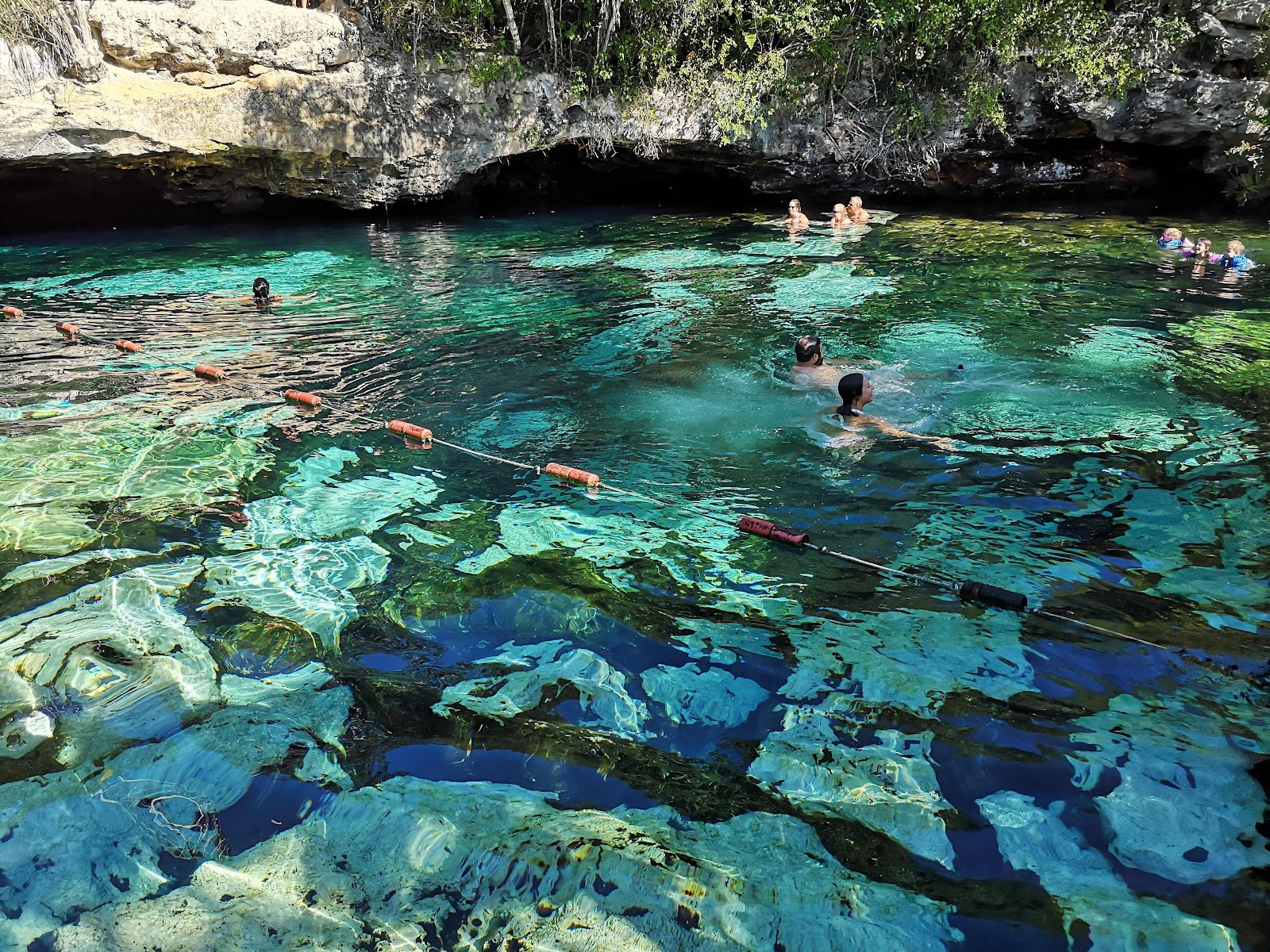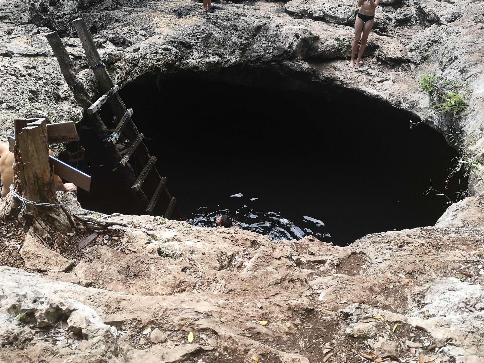 Von Tulum aus haben wir auch die Cenote Calavera besichtigt. Cenoten kommen wirklich in allen unterschiedlichen Farben und Formen. Diese war einfach wirklich ein Loch. Mit zwei kleinen nebendran. Und wenn man da reingesprungen ist, dann konnte man in dieser halboffenen Höhle schwimmen. Überraschend untouristisch!